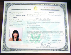 みなさめ。てんていして参りまちた。。今日からアメリケンでございます。ジャッジのしとのお話もなかなか感動的で、グレギョリアンも一緒に行って、涙ぐんでおりました。しかし、58人も一緒にシチズンになったっちゅーのはすごい。。怖いくらい。。ハワイだから??この勢いじゃいったい年間何人のしとがアメリケンになるんじゃ? オフィースに行ったらみなさめにお祝の言葉とトッチエちゃんにレイもらいまちた。あにぎゃとう!実はジブンなりには、シチズンになることは社会的な便宜上ではなく、この国が好きなんだな..と自分でも驚くほど感じ。今さらしみじみとなんか嬉しくなってきましたのでありました。 今日はお祝に「ヤードハウス」に行くはずが、35分待ちっていわれて急きょ近所の「トラジ」に変更。グレギョリアンとささやかなお祝しました。 ↑これが証明書。これでパスポート取って晴れて日本にいけりゅで。(でも、もちろん日本も行きたいねん。) 《今日のコネコ》 また、もじょさんちのヴィヴィが御懐妊で赤ちゃん誕生! きゃわええがや〜。。兄弟のロコちゃんはこんなに大きくなったけろ。まだコネコっぽいフワフワした毛にクリクリお目目できゃわええのぉ〜。 |