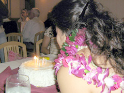 さて、こりはだりでしょう?今日は我社の婆ちゃんのバースデーだら。こんなキャンドル消してる写真を後ろから撮られることもめったににゃーとはおもうけろ、わしは婆ちゃんの前に移動でけん席にいたさけ、カンベンね。 ばあちゃんのお姉ちゃんのミキャちゃんが日本から来てて、妹と一緒に祝えるおたんにょうびにサプライズぱーちしたいっちゅーので、お城とみかどの皆に肥かけてこっそり先にレストランで待ってて総勢16人で仕掛けてみただら。さすがの婆ちゃんもだまさりたようで、おろろいちょった、ひっひっひ。。。 ところが!わしらがしらんうちに、爺ちゃんが先にお会計をすませてきて、あわわわわわっっっ!!お酒飲まない人とかお子さん連れのしとが割り負けせんように、個人でお支払いするつもりでこのレストランをえらんだのにーー!爺ちゃんと大阪のおばちゃんのように「いややわ!奥さんやめてーな!」ちゅー押し問答の末、爺ちゃんのお気持ちをいただくことに..でも、あんまりやでーーー!申し訳ないでーー!爺ちゃんに逆サプライズされて、めっちゃ複雑なココロ。。そりにしても爺ちゃん、散財させてぎょめんね。ほんでごっちゃまでした。 最後はお決まりの記念さちえい。楽しかったね。ありがとう! |