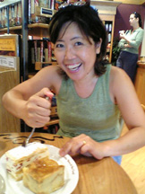 朝、10時。すでに一仕事終わったおふくりょに迎えにきてもろて、霊の豆腐屋さんに行きたくて、魔の亜に連れってもりゃう。お痔玉にわしが好きに違いにゃーて太鼓腹を押されたコ−シ−屋も行ってみたかったので、まんずは『Coffee Beans & Tea Leaf』ちゅー、そのまんまやんけっちゅー名前のカヘに。。。 新しい店でいろいろメニューが珍しくて、朝魚飯のかわりに「ココナッツ&パイナップルブレッドプディング」と「ナポレオンパイ」をシェアする。ラテもおいちかった。でも、まだわし的にはほにょるるこーしーの勝ちじゃけどな。おふくろきゃわええだら?わしはわしのブロクの常連さんの中でおふくろの隠れふぁんがおりゅとみてるで。 さて、目標の豆腐屋へ、、なかなかオサレな外観が魔の亜って感じ。中にはいるとチン髪のねーちゃんが説明してくりる。。「この洋風なムードはわしの思ってた日本職人のおっちゃんが作ってるってイメージとは違うのお。。もすかすてローカルかオ−ガニック好きのヒッピーのようなアメリケンのがやってるんか?」と思いめぐらしていると、中で職人風の日本人のおっちゃんが働いていて、感じのええ日本人の兄ちゃんが微笑んでたのでちょい安心すりゅ。 ..で、こう乳したもの。。ニュウ製品を食わんぐれぎょりあんにトーフアイス(こなこーしーとすとろべりー)。ゆバーバ(こり最高!)、そふと豆腐(まだたべてへん..心配。。明日の朝ご飯にしゅる)豆乳(これ、豆腐そのもの。めっちゃ美味しい、でもラテにはじぇったい無理。) またいろいろ試したいとおもってりゅけど、あんまりまだメニューが少ないのがチンパイ。。頑張ってほしいのぉ〜。目指せ、ほにょるるの『とーふや、じょにー』! |