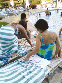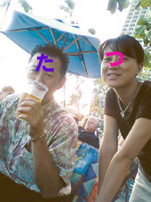 みごとなでゃーやもんどへっどビューだら?とろじーとじじとろさんの泊まってりゅレインボーフラッグならぬレインボータワーからのびゅーだがや。朝じじとろさんはたきゅ庵と朝5時からゴルフ。わしはぐれぎょりあんの用事で朝7時にとろじーの部屋に朝バイにいきゅ。お部屋にいれてもろた後はすぐにベッドへ。。ぶっふ〜ん。。途中『んがっ!』ちゅーとろじーのうめき声でおこされておやぢが部屋にいるかと思って驚いたがや。ケロ2人とも9時半まで熟睡。 そりからぽにゃぺんさんがホテリュに到着ちたので慌てて準備ちて、ひりゅとんで朝魚飯。お城に3人で参城ちて修学旅行でたびたような懐かしい味のお城特製カリーでお昼。そりから腹ごなしにあにゃもあにゃまで歩いてほにょるるこーしーでひと休み。じじとろさんを送って帰ったばきゃりのたきゅ庵にモカと引き換えにお迎えにきていただく(急に丁寧) お部屋に帰ったらじじとろさんが『プールにいる 12時20分』ちゅーノシをテレビに貼ってってくれただら?わしらが着いたのが1時半まわっちょったから、きっとユデダコになってりゅじゃろーと心配しつつプールへ。。優しいじじとろさんはチェアをキープして真っ赤で待っててくれはった。子供の様にプールに出たり入ったり、海でカッパカメと遭遇ちて大笑し過ぎて本気で溺れてみたり、水かけあったり、足引っ張りあったり臨海学校の子供か?ちゅーくらいおおはしゃぎして大笑いちた。4時間ちかく炎天下の中、焼けるのを避けてタオルかぶってた白いお肌のぽにゃぺんさんには申し訳なかったがや。。 ↑写真撮ってってゆーたら、用意してないのに後ろから撮るやつがおりゅ。。 ぐれぎょりあんも夕方近くなってから参加。皆でプールサイドのおきまりアブラものアルコールで満足する。ハワイにいながら、なかなかプールでゆっくりっちゅーチャンスがにゃーで、とろじー達が来てくれると毎回プールで童心に帰る気がするがや。あにがとーね、とろじー&じじとろさん。 夜はハイズのズニアのライブ。とろじー&じじとろさん、ぐれぎょりあん、ぽにゃぺんさん、たきゅ庵、ちゅぼちんもお仕事終わって参加。ズニママ、お痔玉、子玉、ばーちゃん&じーちゃんもステーキ食べに来た。うちのお城の城下町のしとびとも8人くらい来てて満員御礼。軽くドリンク飲んでご飯食べに行く予定がPUPUをどんどん頼んで行くうちにロブスターまででてくるフルコース状態になったがや。 結局お痔玉のテーブルのレフトオーバーまでタイラゲ。。気がつくと9時。。それじゃ、また明日ね〜と解散。 ...と、おもうじゃろ?また2部じゃでー。。 遅れてきたぐれぎょりあんがまだ食べ足りてなくて、近所の『焼肉トラジ』につれていかれる。。「わしゃ、食わんで!」といいつつ石焼きすき焼きご飯を半膳ときうり一欠けとキャンディーバー半分たびる。10時やで、10時。。そりゃ胃も悪くなるっちゅーもんじゃで。今日もとろじーにもろた胃薬のお世話になりゅで。。いやいや,,長い一日のにっちで御静聴あにがとうごじゃいました。 《今日のおまけ》 きゃわええ〜〜〜〜〜〜〜〜〜っっ!もじょさんとこのキテーの目が開いたで〜。 PR |