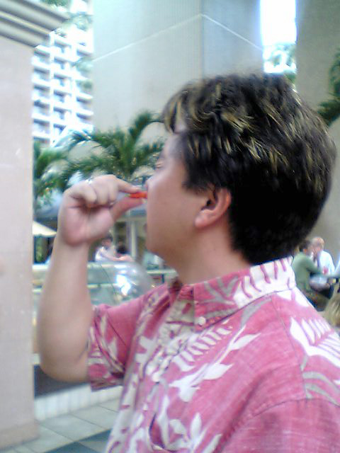 へさしぶりにヒルトンのズニアのライブにいっただら〜。けふは小雨じゃけん、いつもは「トロピックス」でするライブをタパバーに移動してしただら。たきゅあんもぐれぎょりあんもここで働いてるさけ、お互いの様子を見にきゅる。ぐれぎょりあんはどゆーわけか見つけられんかったらしいけど、たきゅあんは仕事終わってちょい見に来てくりた。わしはこの外でするライブが好きじゃのー。とろちんがきたらまた是非行きたいにょ。 人がちゅざいしようとしてりゅのを知っててあっち向いてホイするズニア。ライブの途中でそげな事ちてええんきゃ? てんしゃんが来てくりたのでケネン薩英だら。 休憩の間に鼻芸するズニア。よい子はマネちたらいかんでー。チリ辛のチートスは痛いでー。 |