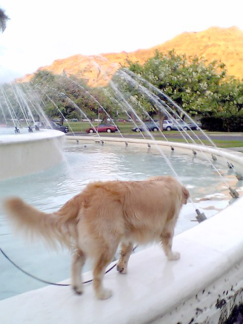 お馴染みでゃーやもんどヘッドだら。 きんのうと今日はお城でマジメな舞踏会じゃったで、特に取材してないがや。 こんな時は親ばか写真だら?最近の爺婆の楽しみはサンセット時にキャピオラニぴゃーくとワイキキを歩くのCちゃんの散歩じゃ。 海がイマイチ苦手なCちゃんはくっちゃんと違って、ゴールデンの癖に水が得意でないだら?波は恐くてしっぽ巻いてにげるんじゃ。くんくん..入ろうかな? ..って、ぐるぐる噴水の周りを回ってるだけ。根性ないオトコだら〜?もう3歳過ぎたけどお○っこも足あげてできんがや。。う〜ん。。。 《今日のオマケ》 むっちーが送ってくれたちゅ。おもちろいで。 まず、この絵をクリックして大きくして.. 1.リラックスして絵の中にある縦の4つの点だけを30秒見つめて下さい。 2.30秒後、近くにある単色の壁や平らな面を見て下さい。 3.何か丸いものが見えますか? 4.丸いものが見えたら目をパチパチまばたきしてみて下さい。 5.見えましたか! PR |