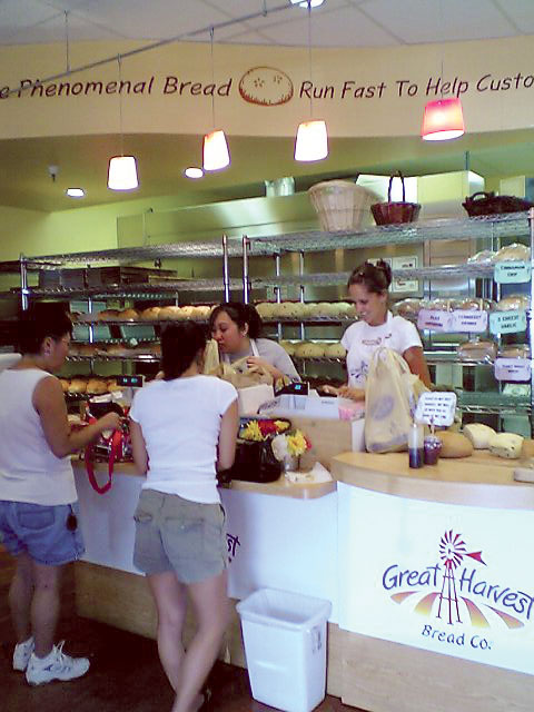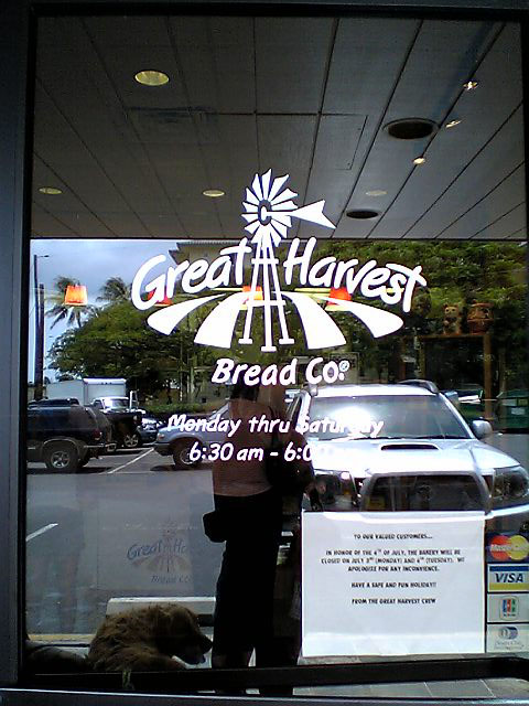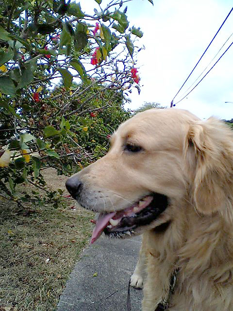 HAPPY BIRTH DAYのCちゃんだら?Cちゃんのおかあちゃんは地雷法師様(JULY 4th)の花火でびっくらこいて陣痛おこして次の日にCちゃんが産まれたらしいんじゃ。そんなもんで数字の弱いわしでもCちゃんのおたん尿日は覚えられちょる。 風にそよそよ花が桜のように散る...わしの大好きなシャワーツリー。。。 ビーゲンビリアもハイビスカスもキレイ..(写真が悪いのぉ) お散歩終わってからのお気にいりコース、カハラの『Great Harvest Bread Co.』のパンを買いにいきゅ。 ここのパンはモチモチしてて他のパンヤとちょい違った食感でわしは大好き。「ブルーベリーホワイトチョコチップ」とか「ピザパン」やら「オリーブ&チーズなんとか」やら時間や曜日によっていろんなパンが焼かれてりゅ。めっさでかいけどな。以外に日持ちもするし、今度日本にも実家のモミヤゲに持って帰ってみようかとおもっちょる。 マフィンもクッキーもおいちいで。へるちーなロハスなパンもありゅ。中にはいると今日の焼き立てのパンを大きなピースで試食させてくりる。 パンを買って外にでると..「触れあい動物園」ができちょった。。この隣にCちゃん御用達のPet Landがあってオヤツを買ってもろて帰ります。 こうしてCちゃんの散歩は延々3時間にもなるのでした。。。ちゃんちゃん |