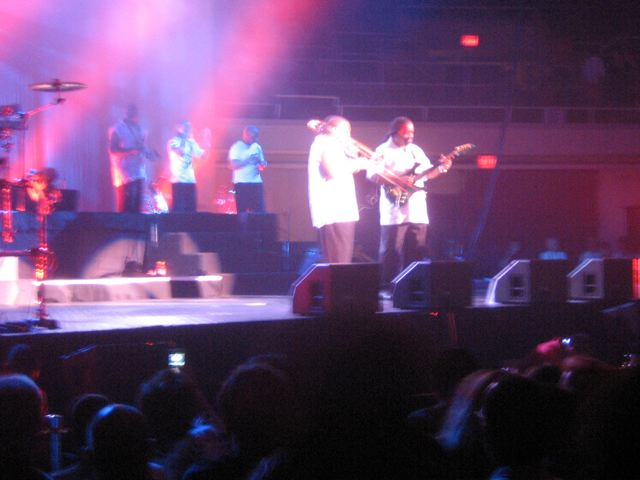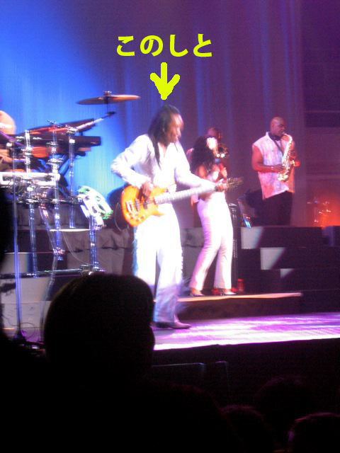 めっさ、へさしブリにコンサートに行ってきたがや。アスウインド&ふぁいあ。いつもは「行きたいね〜」って口ばっかりのぐれぎょりんが、珍しく急にその日にチケッツを買うた。 ぶれじでりゅほーりゅに着いたらめっさ混み混み。すごいもんじゃのぉー、余裕こいてぎりぎりに行ったらパーキングが見つからず、大往生。。らっきーにも、従業員のしとがでてくりてようやく見つかる。会場に入ると皆、平均年齢55歳ってかんぢ?びーりゅやワイン片手のおっちゃん、おばちゃんで賑わう。あり?コンサートもう、始まってるんとちゃうのん?こんなとこで飲んだくれて。。さすが大人のコンサートだら。。みんな、余裕で酒買いに行ったり出たり入ったり。。 会場に入ったら、皆ノリノリ「ディスコ」状態。よっぱらいのおばちゃんは腰ふって瞑想して踊ってはるし、大合唱だら。電話もカメラもヤリタイ放題。横のおっちゃんはずっと電話してはるし、あちこちでカメラのフラッシュが..ほなわても。。 おもちろいのは「クラップユアはんど!」ってゆわはって、最初は皆手上げて手たたいてるけろ、そのうち皆おぢおばじゃけ、腕が下がって来て持続せんことだら。ぷぷぷ。後ろのおっちゃんは「皆座って観ようよ!」って叫んだはるし、アリーナ席で座って観るなんざ、間違ってるで、おっちゃん。 Marie Whiteがパーキンソン病になってから、ほとんどFillip Barryがメインで歌っちょったんじゃが、皆もご存知のあの高音。しつこいほどのドラムやギターのパフォーマンスに途中で何回も観てる方が卒倒しそうになったがや。。あのお年でインターミッションなしで演奏し続けたのはさすがプロだら。。ぴ。。(←脱毛) それと、わしはベーシストのVerdine Whiteはどーみてもタニャカおぶ東京のヘッドシェフのれすたーがフリンジパンタロンで顔を黒く塗って演奏してるようにしかみえんかったノ。 そりと、びっくらちたのはSeptemberのイントロのキーボードソロの大事なところでキーボードの兄ちゃんの椅子が壊れて落ちたけろ、音を外さず引きつつけたとこだら〜。最初は笑いとるための演出かとおもたがや。 周りのしと達を楽しみつつ..え〜え、私も飛びましたとも、踊りましたとも!歌いましたとも!叫びましたとも!そして、わしなりに《おーるでーずのレジェンドのコンサートが4度おいしい理由》を考えてみたがや。 1. 音楽はもちろんハイレベルですんばらしい。 2. 皆で全曲大合唱できる。 3. それぞれが思い出を反芻して楽しめる。 4. 観客ワッチングで笑える。 いや〜、もっともっといろんな懐かしい曲を聞きたかったけど、アーチストも観客もあれが限界だったかもちれんのー。今度はサザンのコンサートでも日本であったらいきたいのーっち、思ったわしだったがや。。(また休止してもたらしいけろ) コーフンのあまりなが〜いレポーチになったけろ、読んでくりたしと、てんきう〜。 |