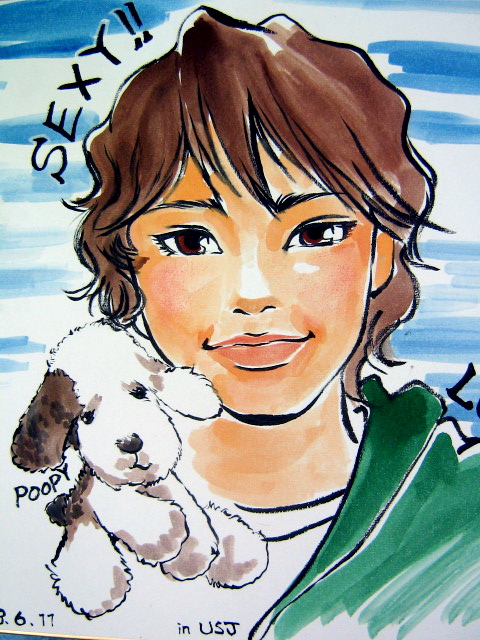 みなさめ、おひさしぶりだら。先週ようやく重いチリが上がって今年の夕焼けサーヒンに行きだしたわし。 だども、先週は波が良過ぎてジブンのフィンでボコボコにされたがや。。今足には何タラ星雲のようなアザが点在し、黒い足に白く輝くバンドエイドでボロボロ。。歳とって無理したらいかんがね。 まーそりはさておいて、、我らがおふくりょが日本から帰ってきただら。ほんでお宝写真をGetしたさけ、ココでイッキョ公開!悲しい時、ムカ付いた時に拝んでみたら福来るだら。そりゃーわしとおぢ玉はメイク落ちるほど笑わしてもろたがや。 ↓まークリックして楽しんでね。 こりはUSJに行って来てジュラシックパーキュに乗った時の記念写真なんじゃけろ、こんな急滑降するとは思わなんで、不意打ちされたらしいわ。水に落ちた後、真ん前でびしょぬれになって、ムッとしとったけど、この自分の写真のおかげで後半元気に楽しめたらしいがや。 おふくりょがまだ時差ボケでブログ書く元気ねーで、代わりに報告。 ほんで、おまけ↓ 進一がたこ焼きミュージアムで書いてもろた、似顔絵。ヌイグルミのプーピーが一緒に描いてあるのが笑えるだら?絵描きのお姉さんが「ジャニーズ系ね〜〜」っちほめまくって描いたさけ、お姉さんの気持ちまで描かれてるとこが分かっておもろいのぉ〜。 帰ったとたんにいろんな笑いを提供してくりる、愛すべきおふくりょ。。てんきう〜〜。あいらびゆ〜〜。 |