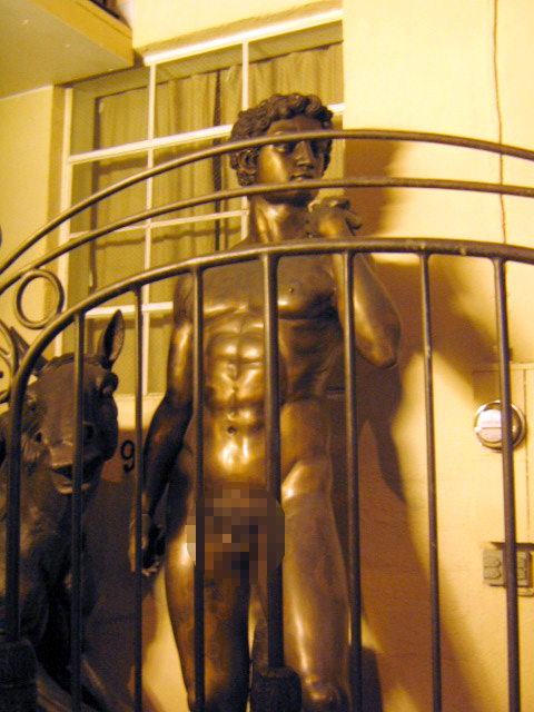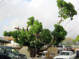 カパフルの「トリャジ」の横にケオスのオーナーが趣味で集めた変な銅像を売ってる店がある。できてもう1~2年は経つけろ売れた様子はにゃーで。こりは眉間にシワよせた「ダャビデ像」いくら銅像でもちとエリョ画像になるといかんのでモザイク(その方がH?) そしてちょっと角にありゅ、ハリョウィンの時に忙しいコスチュ-ムやさん。今年から手作りのデスプレイウインドウちくって変なもん飾っちょる。誰がどこで着るのかナゾ。。 そしてコリがいっちゃんケッタイだら?うちのマンギョツリー。。チキンの形にヘアカッツ。電線の上にかかってる枝を自分達で切れないよって放っておいたらこげな形に。。こりはこりでええかもって毛になってきた。チキンストリートじゃけ。コケ〜〜ッ! 《今日のCちゃん》 ネリスマスプリリントに買ってあげたCOOL BEDが気にいったらちい。$100したけん、えがったのぉ。 PR |