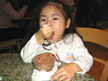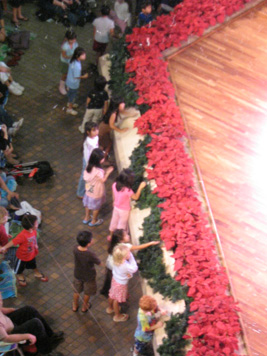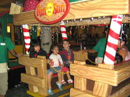 みなさめ、Merry Christmas!だら。 メールやe-cardあにぎゃとうごぜーます。今年はネリスマスカーロが間にあったようでうれしいがや。 さて、今日はひゃわーはまだ、ネリスマスイブイブ。小玉を連れてあにゃもあにゃのネリスマスに行ってきたがや。毎年、ステージでハワイアンネリスマスをテーマに楽しいミニミュージカルをやっちょる。この間グレギョリアンのともらちの娘さんがでてりるっちゅーので観に行ってなかなか感動したので小玉を連れていきたかったノ。 ステージではころも達が釘付け、小玉もグレギョリアンの肩車で真剣な面持ち。このミュージカルの最後にはニセモノの雪が降ってくるノ。こりが本物みたいに溶けて何ともリアルですてち。でも、なんてったって小玉の今日のメインはちゅーちゅーとれいん。このミュージカルにもトレインが出てくる。小玉の気持ははやるばかり。。。 れも、今日はちゅーちゅーとれいんのLast Day。6時過ぎに行っても8時40分までトレインの順番待ちだら。それまでご飯食って、サンタの家へ時間稼ぎ.. ところがサンタの家でも1時間待ちでようやくサンタとちゃっちんに納まる。わしのデヂカメで撮ろうとおもたら、あのカミラがいいっちプロのカミラマンを所望の小玉。ちょうどええで、こりをグランパ&グランマのギフトにする事に。ちなみに小玉はサンタにプレイドウをおにがいした模様。。 そして、ちょうど時間となりました..ベンベン。。♪..で、待ちに待ったちゅーちゅーとれいん。父兄はとれいんのいっちゃん後ろから着いていくんぢゃが、横で踊ってる兄ちゃんがおきゃまっぽくて観てて楽しかったがや。ぷぷぷ。。 最後はほにょるるこーしーで休憩。小玉はほれ..この通り。。。えーーえ。甘やかしましたとも。。ご飯もろくに食べませんでした。ぐれぎょりあんもパートダディを楽しんどった様子ぢゃった。ほんまに小玉はかわええがや。。 あ,,おぢ玉。帰り迎えに来る前におしっこ行かせるの忘れたけろ。ハマってたらごみんね。 |